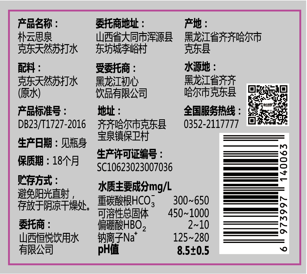 朴云思泉克东天然苏打水